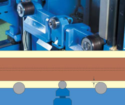 Заготовка загружается при помощи мощных прижимных роликов расположенных на сторонах загрузки и выгрузки станка. Даже самая тяжелая заготовка загружается рационально.