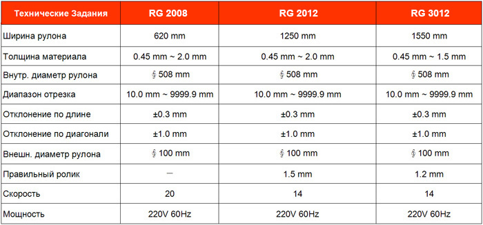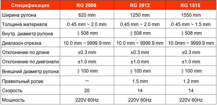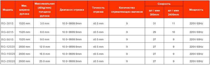 | Характеристики оборудования для поперечной резки тонких металлов |