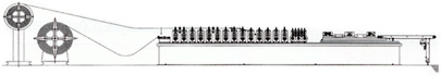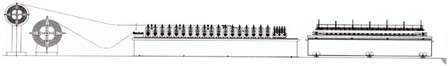 Главная Т-формирующая машина использует инверторный двигатель, производящий поточную скорость 40 метров в минуту. Гидравлическая автоматическая машина для перфорирования и отрезки соединена с главной машиной профилирования, которая автоматически перфорирует и разрезает. Размеры готовых измеряются с высокой точностью. Длина продукции: 3.6м (12 футов). Дюймовая или метрическая система являются опциональными.